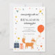 Um convite de aniversário de raposa giro e divertido. Coloridos, mas simples e limpos, esses animais são perfeitos para crianças no primeiro aniversário ou para crianças de todas as idades. Personalize facilmente este design com os detalhes do seu partido! Verifique nossa coleção de correspondência para coordenar itens.