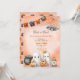 Convite de Halloween de fantasma fofo em laranja, preto e branco .