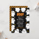 This fun and spooky birthday invitation features adorable ghosts with cute facial expressions, yellow and orange stars and a black polka dot background. The text combines bold and sans serif fonts for a stylish and modern look. This is perfect for Halloween.