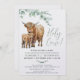 Convites Cute Highland Cow Moderna Eucalyptus Greenery