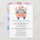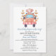 Designed with a soft and cheerful color palette, this invitation features a cute baby monkey in a charming pink-striped car, surrounded by delicate yellow greenery. The monkey's sweet expression and playful pose add an extra dose of charm to the invitation, creating a heartwarming and inviting atmosphere for your drive-through celebration.