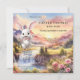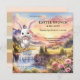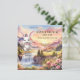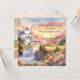 Um convite à Páscoa e à caça de ovos bonitos, com uma pintura de paisagem pastel com um belo coelho de fantasia ansioso para ir à festa. Na parte de trás está um design striped elegante.