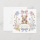 Announce your baby shower with a touch of playful elegance using this charming teddy bear themed invitation. The centerpiece is a delightful teddy bear adorned with a sweet blue bow, surrounded by a beautiful arrangement of pastel flowers and delicate greenery. The elegant script and soft color palette create a sophisticated yet heartwarming feel, perfect for celebrating mom to be's special day. This card is sure to set a joyful tone for your baby shower fun.