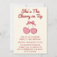 Convites Cute Pink Bow Cherry on Top First Birthday