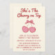 Make her very first birthday extra sweet with this charming “She’s the Cherry on Top” birthday invitation. Featuring a cute cherry illustration with a delicate pink bow and playful typography, this design is perfect for a girly, fun, and modern first birthday celebration.