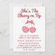 Convites Cute Pink Bow Cherry on Top First Birthday