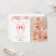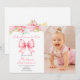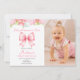 Convites Cute Pink Bow Girl First Birthday Photo Invitation