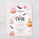 Celebrate your little pumpkin’s big day with this adorable Spooky One first birthday invitation. Designed in a soft pink gingham pattern with watercolor pumpkins, friendly ghosts, bats, and a cute jack-o’-lantern bow, it blends sweet and spooky perfectly. The back includes space for a favorite photo, making it a charming keepsake. Perfect for fall birthdays, October babies, or Halloween-themed first birthday parties.