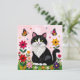 Convites Cute Pink Kitty Cat in Flowers