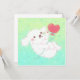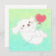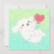 A cute illustration of a white puppy holding a heart shaped balloon for Valentine's Day and for dog lovers