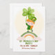 A cheerful St. Patrick’s Day party invitation featuring a cute leprechaun holding a lucky four-leaf clover above a soft rainbow and clouds. Designed in a playful watercolor style with fresh green tones, this illustration is perfect for Irish-themed parties, kids celebrations, family events, and festive St. Patrick’s Day gatherings.