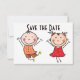 Anúncios de salve a data caprichosos e divertidos com um casal de bonequinhos, pulando de alegria. Fácil de personalizar com os planos do seu casamento.