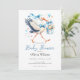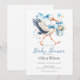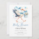 A baby was delivered by a cute stork wearing a blue hat and bow. Red and blue hearts were sourrended by a baby and stork.