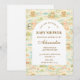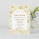 A whimsical watercolor design featuring a playful mix of pastel summer animals surrounded by tropical leaves, seashells, starfish, and soft botanical details. The cheerful palette of peach, mint, coral, and soft blue creates a light storybook atmosphere, while the elegant arch layout keeps the celebration details beautifully framed and easy to read. Perfect for a warm, joyful summer celebration with a charming nursery aesthetic.