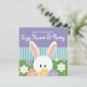 Picos bonitos de um coelho para fora atrás dos ovos da páscoa pastel bonito nestes convites de festas feitos sob encomenda bonitos da caça do ovo da páscoa que podem ser exprimidos para dizer o que quer que você quer no traseiro e dianteiro destes cartões. © Chrissy H. Estúdio dos trabalhos de arte, LLC. Todos os direitos reservados.