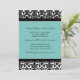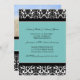 Convites da foto da festa de noivado no azul de turquesa elegante, cor damasco floral clássica preto e branco. Inteiramente customizável com seus detalhes da festa de noivado e sua própria foto. Também disponível em uma vasta gama de combinar produtos do casamento.
