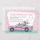 A festa de solteira retro convida com cadillac cor-de-rosa
