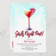 Convites da festa de solteira da noite das meninas. É uma noite das senhoras! Em honra do bachelorette, este convite é projetado com uma luz - fundo azul e um cocktail frutado. As opções adicionais do chá de panela estão disponíveis em Metro-Event.com e em MetroEvents em Zazzle.