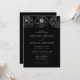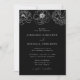 Convites de casamento florais elegantes, com uma borda de flores brancas delicadas e de fundo preto. Personalize os convites florais a preto e branco com seus nomes e detalhes de casamento em letras brancas com sotaques de escrita de caligrafia. Projetado para coordenar com a nossa coleção de casamento de Dainess Floral.