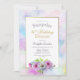 Um convite de festas de janto surpresa floral azul e cor-de-rosa, com aniversário de 40 anos dourado e borda de aquarela pintada pastel.