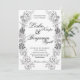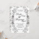 Convite para Casamento de Dahlia Wreath, preto e branco simples