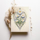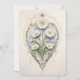 Anuncie seu dia especial com este maravilhoso convite para salvar a data apresentando uma bela design de inspiração para Art Nouveau. A frente do cartão mostra um arranjo cativante de margaridas brancas emolduradas por sotaques intrincados do ouro e uma folhagem verde exuberante, criando uma sensação de elegância do eterno e beleza natural. Um toque charmoso de borboletas e um pássaro azul delicado contribuem para a atmosfera romântica. A parte de trás do cartão continua o tema elegante com um motif floral detalhado, fazer-o como um guardião perfeito para os seus convidados. A paleta de cores suaves de branco, verde, azul e ouro fornece uma visualização sofisticada e serena do seu próximo casamento.