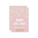 Celebre a chegada do seu pequeno com o nosso Convite para Chás de fraldas Daisy! Este convite apresenta um tema de margarida inspirado na boêmia, com matizes de pastel macio e uma vibe retrô, de ranhura. Perfeito para um chá de fraldas, é uma maneira deliciosa de dar o tom para uma celebração relaxada e encantadora. Traga um pouco de sol e alegria para seu chá de fraldas com este convite margarida sonhador que certamente encantará seus convidados! BBS363