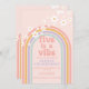 Retro inspirou Cinco é um convite de aniversário de 5 Vibe com estilo hippie pastel arco-íris e margarida