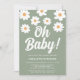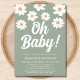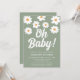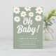 Você está planejando o chá de fraldas de uma garota ou de um menino? Este convite para chás de fraldas florais é decorado com margaridas desenhadas à mão e tipografia retrorreflectora branca na moda num fundo verde. Facilmente personalizável. Desenho original © Michele Davies.