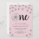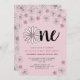 O moderno convite para o primeiro aniversário, cor-de-rosa, para a festa de primeiro aniversario das raparigas.