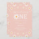 Convite cor-de-rosa para primeiros aniversarios margaridas Personalize este convite fofo com as suas próprias informações!