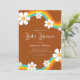 Surpreenda seus hóspedes com estes adoráveis convites para chás de fraldas, com tipografia retrô, floral de margarida e design de terracota arco-íris! Adicione facilmente seus próprios detalhes clicando na opção "personalizar este modelo".
