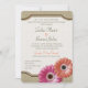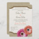 Bonito Gerbera Daisies em tons cor-de-rosa e corais com um toque rústico do país da burlap. Perfeito para a natureza inspirou casamentos no país, por um lago ou na praia. Entre em contato com o designer para margaridas nas suas cores de casamento.