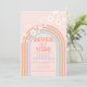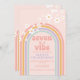 Retro inspirou Seven é um convite de aniversário de 7 Vibe com estilo hippie pastel arco-íris e margarida