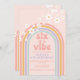Retro inspirou Seis é um convite de aniversário de 6 Vibe com estilo hippie pastel arco-íris e margarida