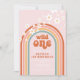 Retro inspirou um convite de aniversário selvagem com estilo hippie arco-íris, margarida e fontes e cores boho.