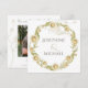 Anuncie seu noivado e envie uma data para salvar com esta margarida de vintage exclusiva | cartão quadrado de flores de camomila. Simplesmente personalize com seus nomes. A coroa estonteante e embelezada botânica é perfeitamente detalhada. Adicione sua foto quadrada ao verso e personalize o texto. Certifique-se de verificar outros produtos na nossa suíte de casamento.