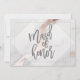 UM CARTÃO DE DAMA DE HONRA MODERNO E CLÁSSICO COM EFEITO DE MÁRMORE E OURO ROSA COM LINHAS GEOMÉTRICAS E FONTE EM CURSIVA NA MODA. PARTE DE UMA COLEÇÃO