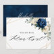 Convite de proposta de dama de honra floral azul marinho escuro com um buquê elegante de azul marinho, azul real, branco, dourado, champanhe marfim, rosa desmaiado, rosa, ranunculus, peônia, botões de flores e folhas de eucalipto verde salvia e aquarela elegante com moldura geométrica neutra com brilho redondo. Por favor, entre em contato para qualquer ajuda na personalização ou se você precisar de qualquer outro produto com este design.