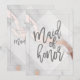 UM CARTÃO DE DAMAS DE HONRA MODERNO E CLÁSSICO COM EFEITO DE MÁRMORE E OURO ROSA COM LINHAS GEOMÉTRICAS E FONTE DE LETRA SCRIPT EM ALTA. PARTE DE UMA COLEÇÃO