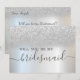 Cartão de dama de honra com efeito bokeh de brilho prateado elegante.