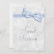 Convites elegantes da celebração da festa de aniversário do doce 16 para os adolescentes. A festa de aniversário décimo sexto/doce dezesseis convida. Fundo branco bonito da cor damasco com um arco e uma imagem azuis bonito, à moda da fita. Este glamoroso, chique, elegante convida belamente é sofisticado e decorado/imprimido em ambos os lados. NOTE POR FAVOR: Tudo convida em Zazzle tem imagens impressas do plano. Imagens do arco e da fita compradas de digital-design-por-Elena. Se você precisa algum auxílio que personaliza seu convite me contacta por favor através de minha loja e eu estarei feliz ajudar.