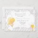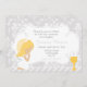 Este convite da Primeira Comunhão Damask apresenta uma adorável garota loira de cabelos em um primeiro vestido de comunhão sagrado.