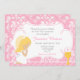 Este convite da Primeira Comunhão Damask apresenta uma adorável garota loira de cabelos em um primeiro vestido de comunhão sagrado.