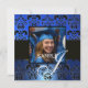 Convites DAMASCO DE FORMATURA MONOGRAMA, azul branco preto