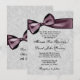 Este design com seu arco roxo do cetim da ameixa do falso e seu fundo do damasco do grunge das cinzas de prata faz um convite elegante do casamento. Eu recomendo o papel de papel metálico hued do gelo que dá a seu convite um shimmer e um brilho especiais. Você pode experimentar com os tipos de papel diferentes para obter apenas o olhar que você quer. Os cartões de harmonização de RSVP são mostrados abaixo.