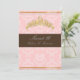 Um tratamento real para os convites de Doce Dezesseis da sua pequena princesa. Com tiara dourada com pérola. Cor de fundo DIY rosa e sotaque de chocolate.