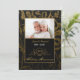 Elegante 50º Aniversário de Casamento, convite para o Damasco de Floresta Negro e Ouro, com ouro limite de sotaque, para celebrar juntos essa data especial de 50 anos. Carregue uma foto para substituir o espaço reservado para fotos. Personalize o texto inicial e posterior do convite com a hora, data, local e outras informações.