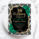 Convite de aniversário 20. Elegante design verde-esmeralda floral com ouro e rosas brilhantes falsos. Apresenta cor damasco preta e branca e fonte de script. Perfeito para uma comemoração de dia das mulheres na moda. Pode ser personalizado para qualquer idade! Impressos convites Zazzle ou modelo de impressão digital instantânea para download.