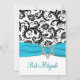 Convites Damasco preto e branco com fita Aqua FAUX
